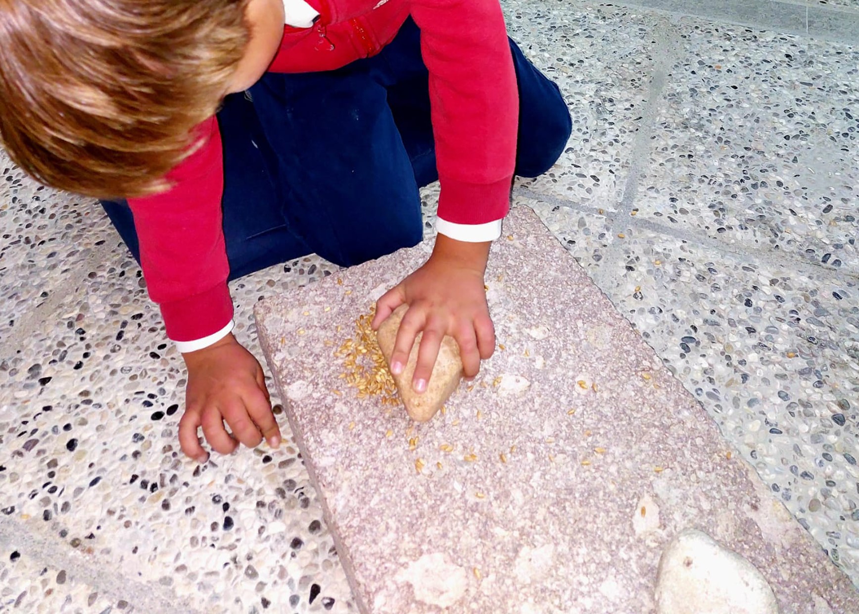 Il laboratorio accompagna gli alunni alla scoperta dell’importanza che la coltivazione e lo sfruttamento dei cereali hanno avuto sin dal Neolitico. Attraverso un’esperienza pratica e coinvolgente, i partecipanti utilizzeranno macine e pestelli in pietra per sperimentare la molitura manuale del grano e ottenere la farina. Successivamente, con un impasto lievitato, si procederà alla decorazione del pane mediante l’uso di pintadere e strumenti tradizionali. Al termine della cottura, ogni alunno riceverà il proprio pane.